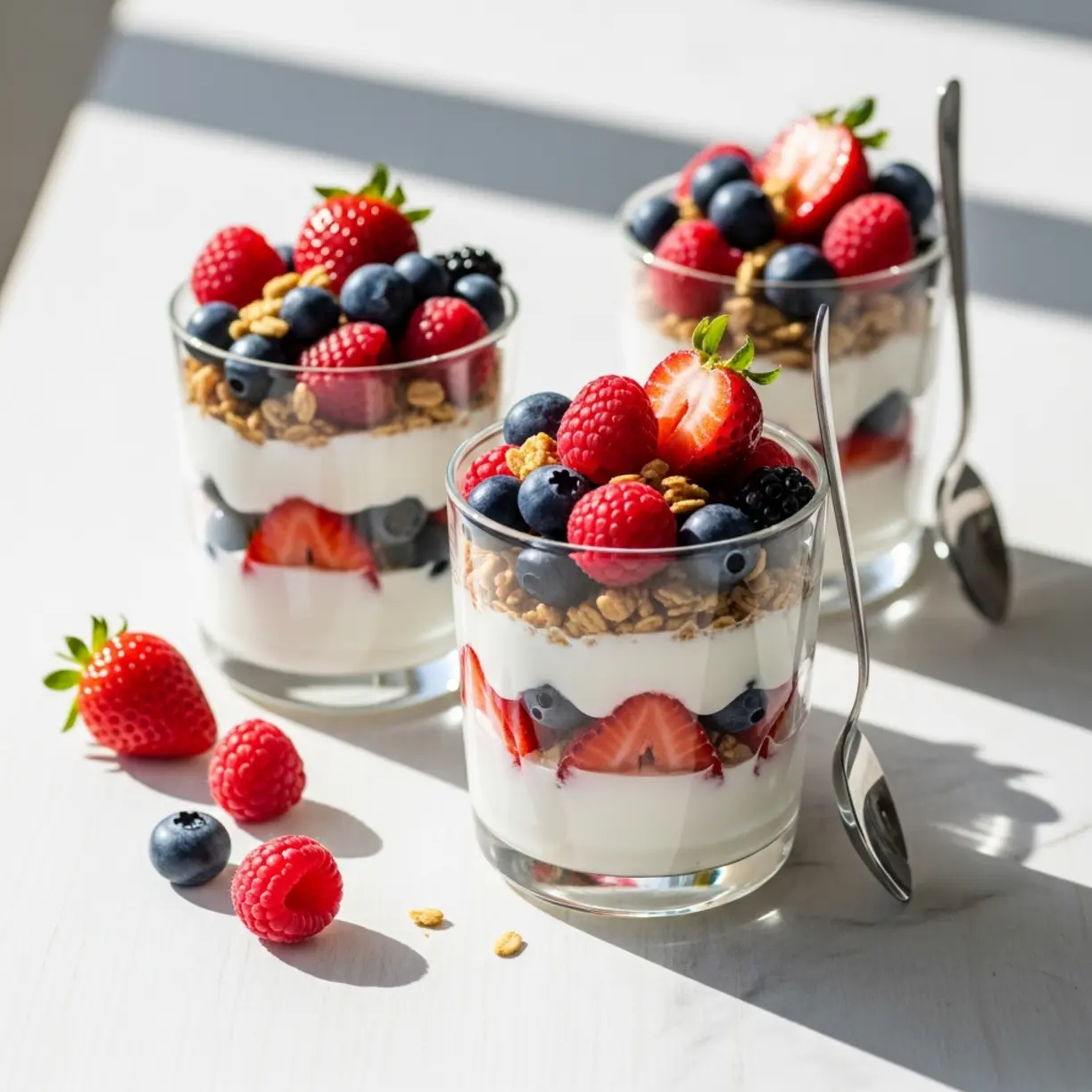 Making Greek Yogurt Berry Parfait Cups is straightforward, requiring just a handful of pantry staples and fresh produce. This recipe yields 4 servings and takes about 10 minutes total. Here’s everything you need: