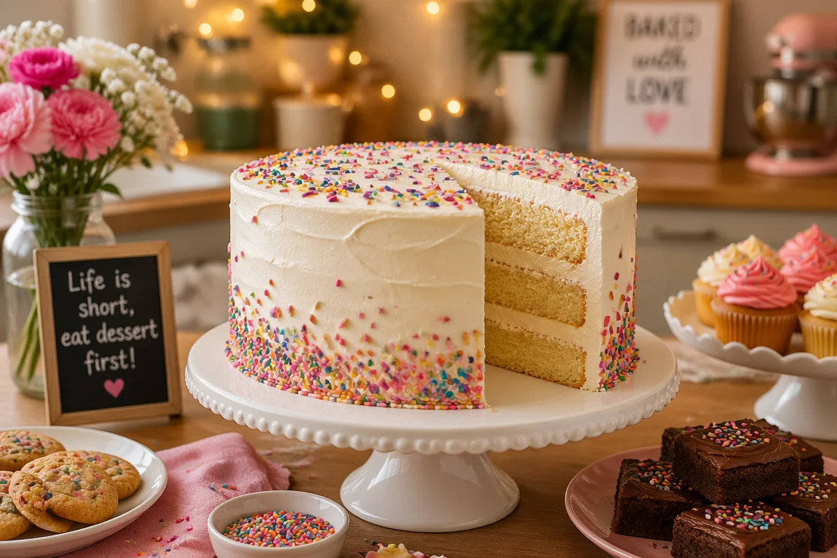 Vanilla cake has been around forever because it is simple and flexible. It can be fancy with smooth frosting and piping, or casual with a dusting of powdered sugar. It is also the cake people request when they do not want chocolate, which is honestly more often than you would think.