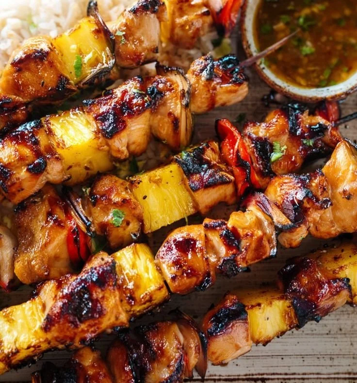 Serve Hawaiian Chicken Skewers hot off the grill over a bed of fluffy white rice. The rice absorbs the marinade and adds to the overall flavor. You can also serve them with a side of extra barbecue sauce or a fresh salad for a complete meal. These skewers are great for picnics and parties, so feel free to prepare them in batches to share!