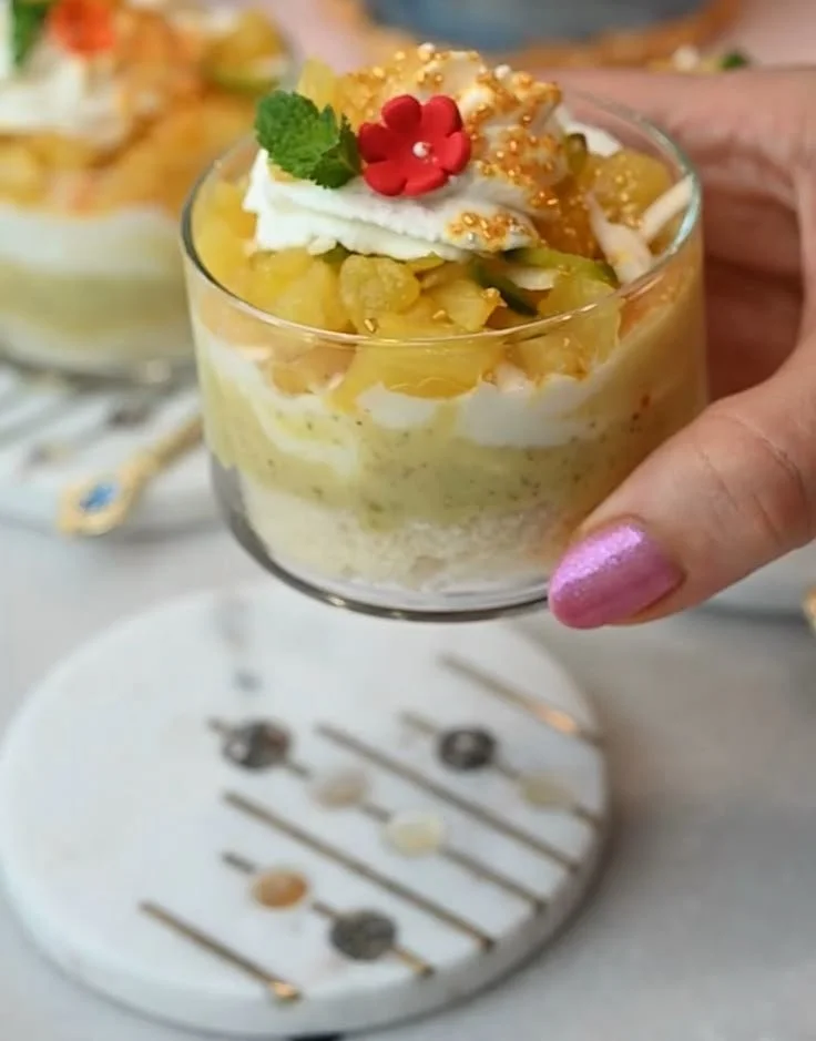 - Top with a layer of the whipped pineapple cream.