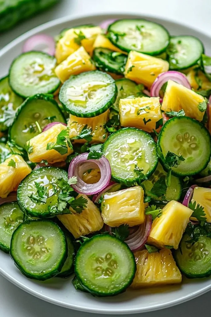 Pineapple Cucumber Salad is a refreshing dish that brings together the sweet taste of pineapple and the crispness of cucumber. This salad is perfect for hot summer days, barbecues, or any meal that needs a light and zesty side. It’s easy to make, healthy, and sure to impress your family and friends.